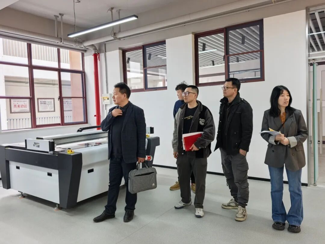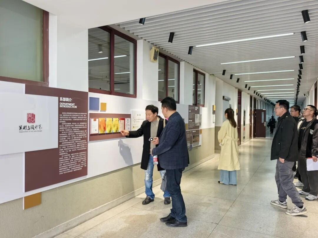 讲座结束后,陈教授前往采真楼E栋,对实训室建设进行现场指导。针对手工坊,他建议以苏州灯彩作为非遗主题亮点,与虎丘灯彩大师对接,建立校企合作模式。在考察E109实训室时,他建议将工作坊升级为“AI创意设计工作坊”,并采用柜体进行虚隔断,区分设计区、操作区和展示区,优化空间布局。在技能大赛参赛方面,陈教授建议注重作品的“国际范”提升,参考红点奖等国际大赛作品,注重色彩搭配与国际化风格。