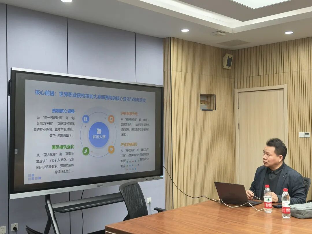 讲座中,陈鑫教授结合世界职业院校技能大赛新赛制背景,系统分析了职业教育的发展趋势。他指出,新赛制已从单一技能比拼转向综合能力考核,强调语言表达与团队合作,采用“真场景、真问题、真技能”的“三真”模式,并允许使用AI技术辅助竞赛。针对江苏省仍沿用老赛制的现状,陈教授预计将逐步向新赛制过渡,建议教师团队提前布局。