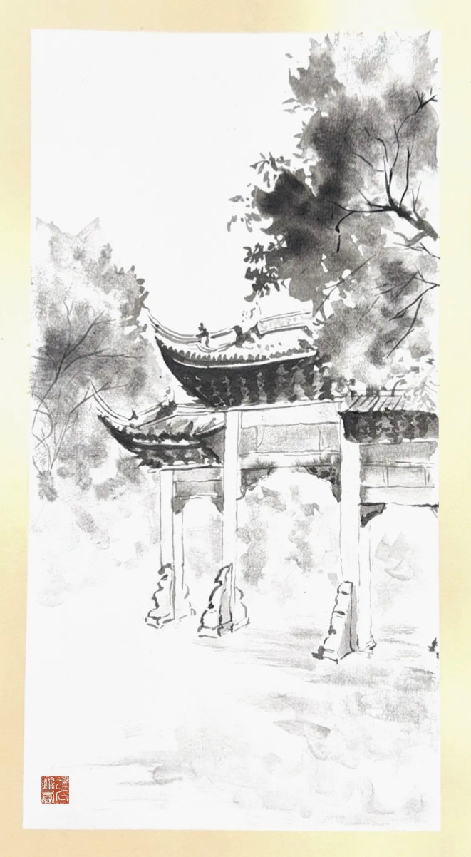 陆巷依山临湖,古巷幽深,白墙黛瓦间保留着浓厚的传统风貌。面对真实的自然与人文环境,同学们认真观察、积极创作,在实践中锻炼观察能力和表现能力。