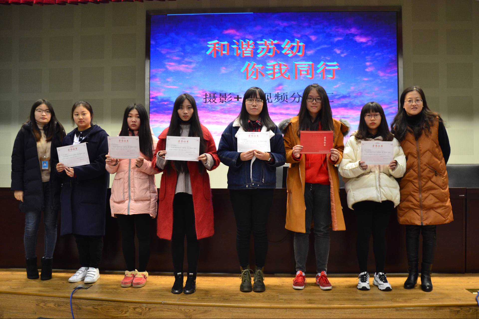 为了分享摄影成果、展示宿舍风采,我校高专学生会生活部于12月14日晚在报告厅进行了“和谐苏幼,你我同行”摄影、微视频分享汇活动。观看本次活动的老师有蒋朝群老师、谢慧娟老师,学生有高专各年级各班的代表。
