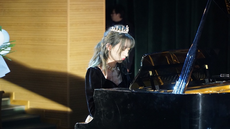 气球飘飘,灯光灿烂。袅袅佳音在晶莹闪耀中动人心魄,手指翩跹在琴键上飞舞,是几年潜心练习的硕果,是苏幼时光带来的佳酿。随着两位主持人开场白结束后,音乐会正式开始。
