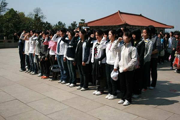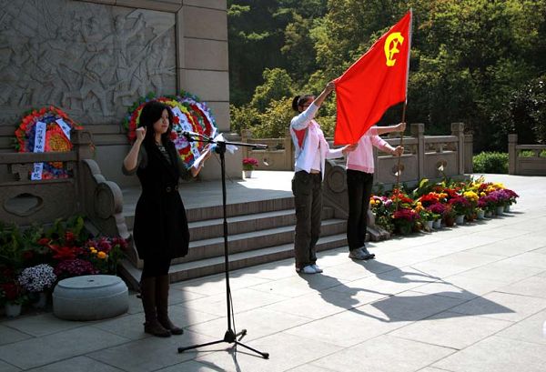 08级新团员入团宣誓仪式 来源: 发布时间:2009-04-17 00:00:00 浏览次数: 次 【字体:小 大】 4月11日,校团委组织08级学生在横山革命烈士纪念碑下举行庄严的入团宣誓仪式。经08级各支部的民主评议,班主任推荐,校团委审核批准,此次有59名08级学生加入了中国共产主义青年团。宣誓仪式是入团的最后一个环节,也是学生团内政治生活的开始。在团旗下新团员庄严宣誓,老团员为她们戴上了团徽。最后濮校长对所有的08级新老团提出了殷切的期望,望她们能刻苦学习,认真履行团员义务,为团旗增色。 分享到: 【打印正文】