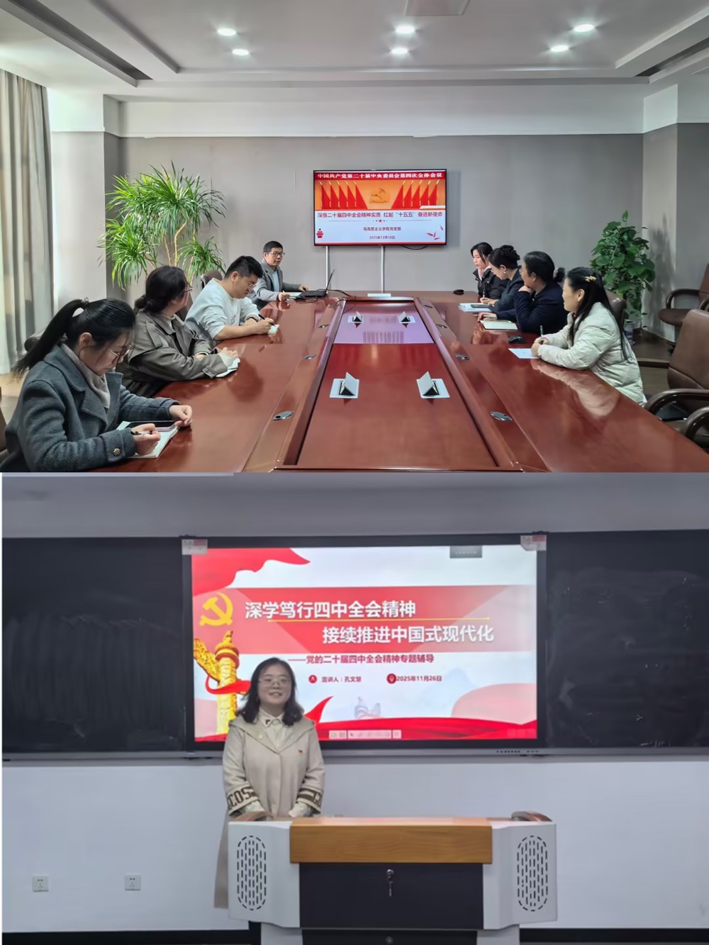 邹学、孔文慧两位教师聚焦党的二十届四中全会精神,深入各党支部开展宣讲。结合全面从严治党、高质量发展等核心议题,解读全会精神与精神谱系的内在联系,引导教职工将学习成果转化为工作实效,推动理论学习与岗位实践深度融合。
