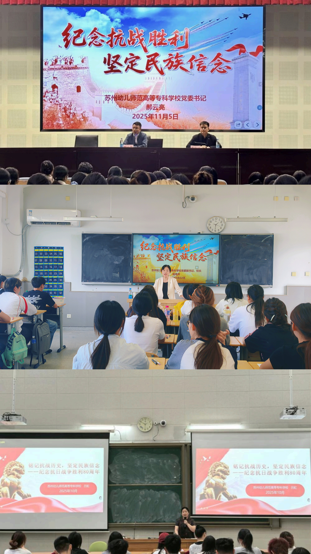 校长殷海芳、副校长吕虹深入系部一线,为美术与设计系、学前教育二系师生讲授抗战精神专题党课。结合抗战历史中的鲜活案例,生动诠释伟大抗战精神的核心内涵,激励学生铭记历史、坚定信念,将爱国情怀转化为学习实践的动力,现场反响热烈。